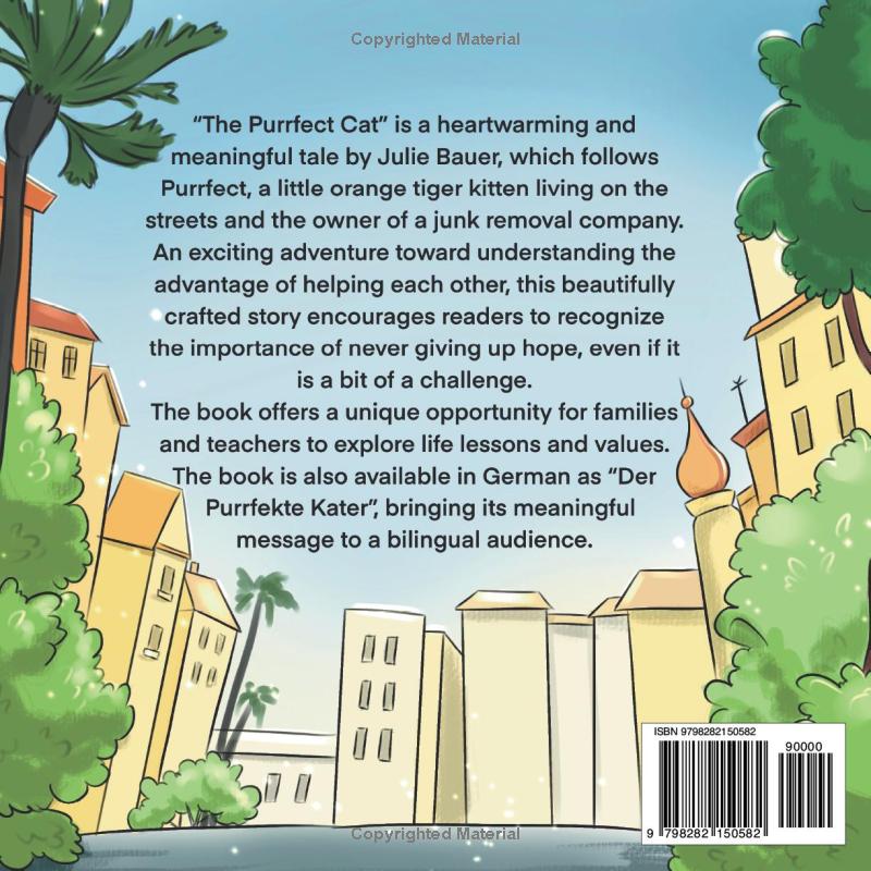 The book is also available in German as “Die Purrfekte Katze,” bringing its meaningful message to a bilingual audience.